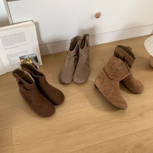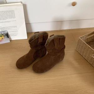 真皮磨砂皮堆堆短筒女2025秋冬季新款内增高圆头短靴韩系