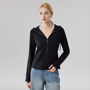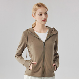 lulu外套砂洗空气层连帽修身显瘦拉链开衫上衣小众设计感外穿帽衫