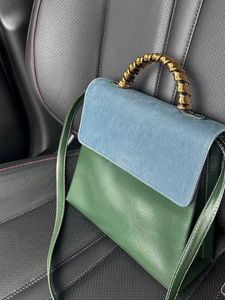 真皮绿色单肩斜挎包包女式2025新款轻奢小众高级感手提通勤小方包