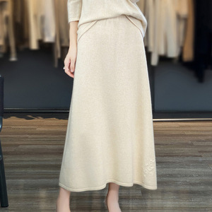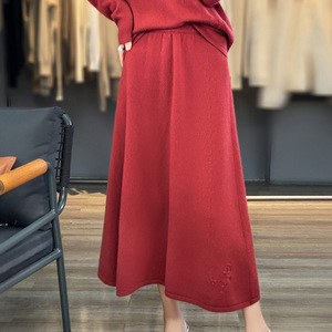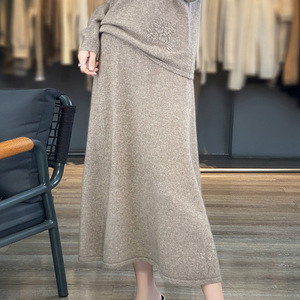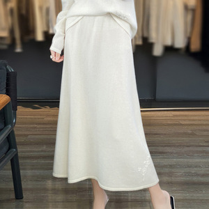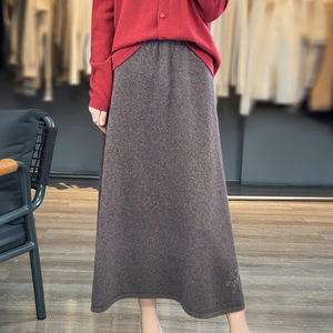 2025秋冬新款纯羊毛半身裙女士手工时尚高腰中长款针织羊毛裙