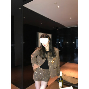 区区欧阳 9/8 20点【贵贵千金】亮片绣花人字纹小香风外套短裤