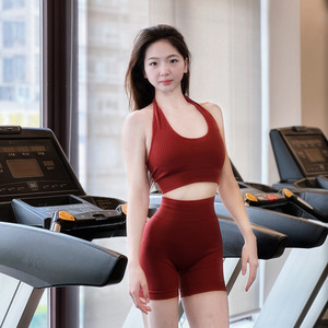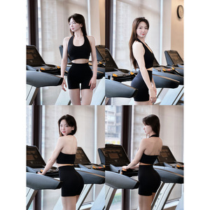 瑜伽背心健身套装挂脖款美背一体式运动内衣无缝瑜伽短裤三分裤