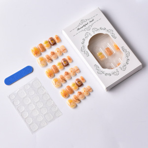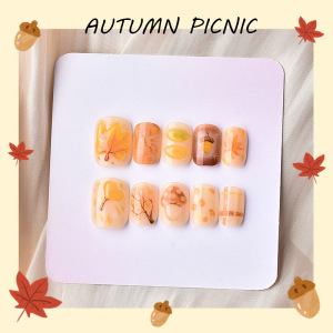 30片跨境秋冬款方块穿戴甲高级感3D立体蘑菇枫叶松果美甲甲片现货