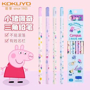 国誉Campus三角铅笔小猪佩奇HB木质刀削儿童铅笔高颜值一年级学生