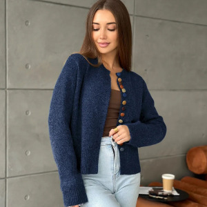 亚马逊跨境新款彩扣针织开衫2025秋冬新款宽松休闲欧美毛衣女外套