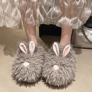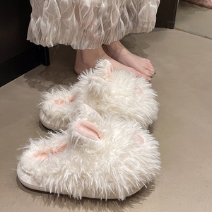时尚百搭可爱兔子包头棉拖鞋女2025秋冬新款厚底增高舒适毛毛拖鞋