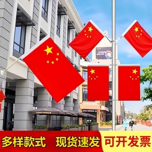 国旗五星红旗小区路灯杆旗帜V型工字旗7字旗户外墙壁免钉斜插国旗