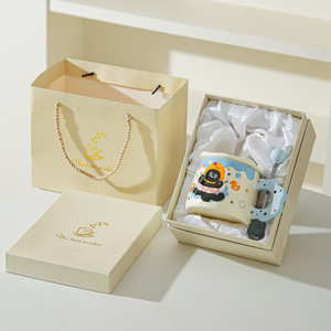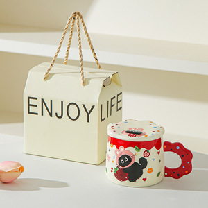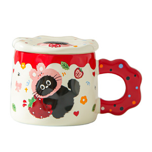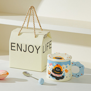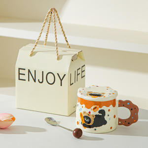 带盖可爱套装卡通小黑猫杯子高颜值情侣陶瓷杯水杯马克礼品伴手礼