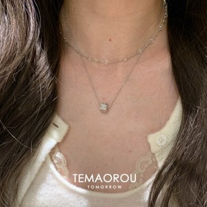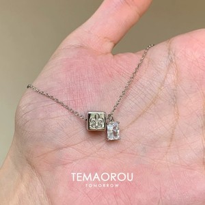 银色方块闪钻吊坠项链轻奢小众设计锁骨链高级感气质毛衣链配饰女