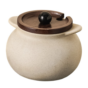 轻奢风陶瓷粗陶大容丽猪油罐带勺厨房多用途辣椒酱罐子调料罐批发