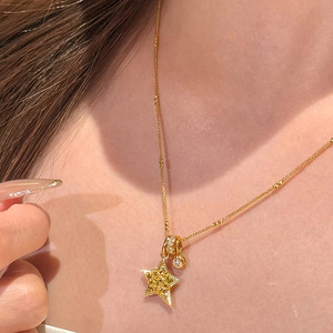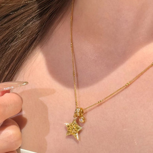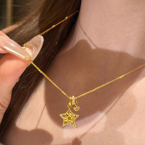 小红书爆款复古碎冰冰五角星跑环泡泡闪钻项链精致锁骨链一件代发