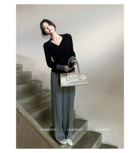 鹭青一【乌龙撞奶】针织开衫女春V领显瘦上衣外套复古羊毛打底衫
