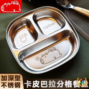 加厚加深【卡皮巴拉:三格】餐盘+勺子