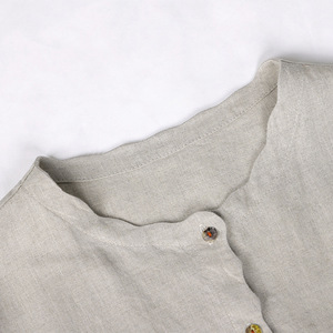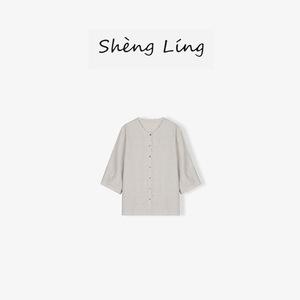 100%汉麻雨露波浪花边七分袖宽松女衬衣上衣SL50321