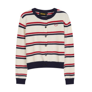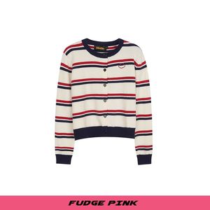 Fudge Pink 25冬季New甜美少女条纹图案宽松毛衣开衫