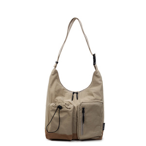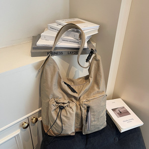 斜挎包2025新款简约时尚单肩包抽带车缝线拼色大学生通勤包批发