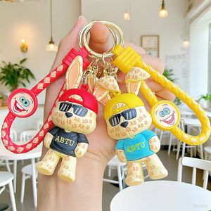 跨境AB兔子硅胶钥匙扣潮酷眼镜小兔公仔书包挂饰汽车小礼品批发