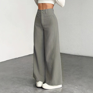 跨境女装2025新款高腰竖条纹阔腿裤直筒拖地裤通勤百搭休闲长裤