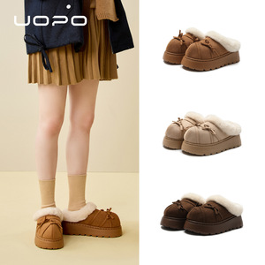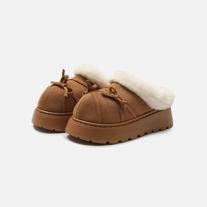 蝴蝶结棉拖鞋冬天可外穿保暖加绒增高时尚百搭室内居家毛绒拖鞋女