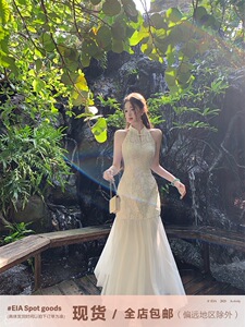 新中式国风EIA一尧【流仙裙】气质提花旗袍女春挂脖连衣裙两件套