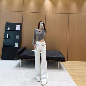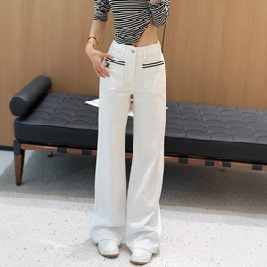 ce25ss秋冬新款撞色螺纹双口袋牛仔裤工艺洗水logo图案白色牛仔裤
