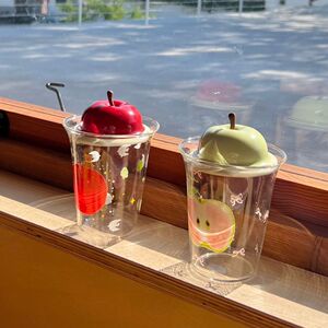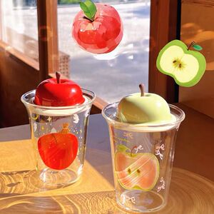 苹果玻璃杯高硼硅家用耐高温咖啡牛奶杯果汁杯带吸管大容量饮料杯