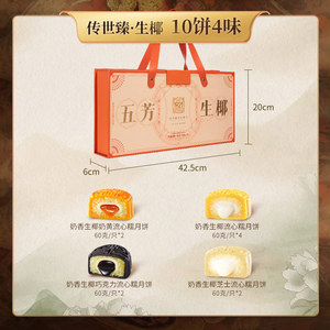 【四层流心-10饼4味600g】传世臻-生椰糯月饼礼盒