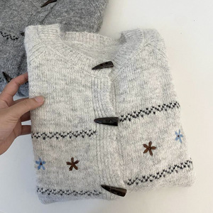秋冬氛围感穿搭!2025新款韩版复古文艺提花设计圆领宽松毛衣外套