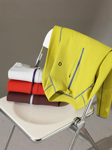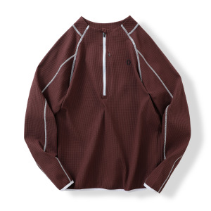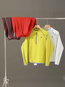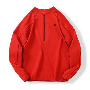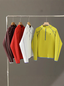 半拉链撞色明线t恤秋季男女同款美式设计宽松运动百搭情侣长袖