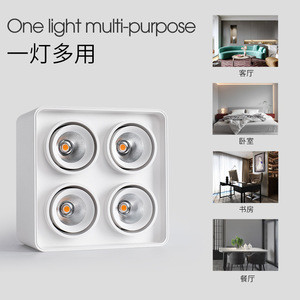 led明装射灯方形四头天花筒灯无主灯客厅卧室可调角吸顶式斗胆灯