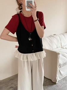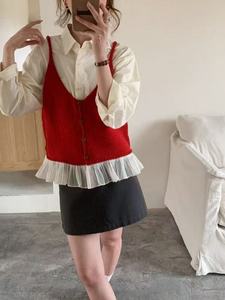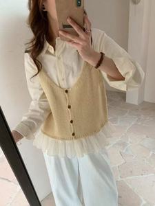 蕾丝拼接针织背心马甲女2025新款外搭叠穿小吊带坎肩无袖上衣韩版