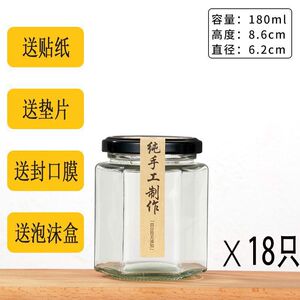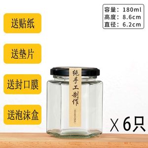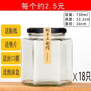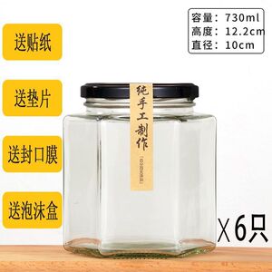 六棱玻璃罐密封食品级小带盖空一斤柠檬膏蜂蜜辣椒果酱瓶子