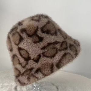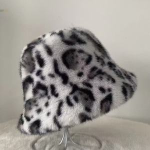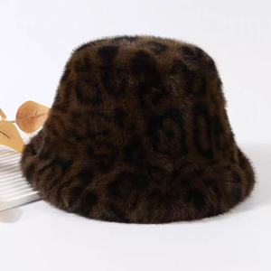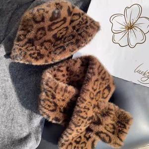 新款女士秋冬豹纹渔夫帽韩版潮百搭仿貂绒保暖盆帽显脸小潮复古帽