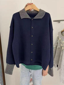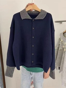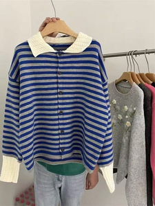 2025秋季新款韩版宽松显瘦条纹POLO领长袖针织毛衣百搭慵懒上衣女