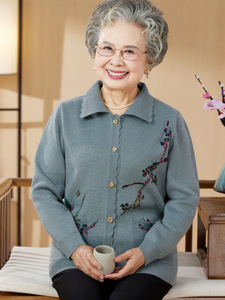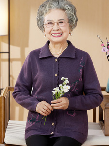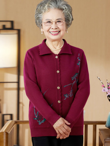 老人妈妈装宽松开衫太太薄款奶奶装中老年人女春装毛衣春秋装外套