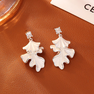 法式复古不规则双层叶子耳钉高级感时尚优雅清新耳饰简约仙气耳坠