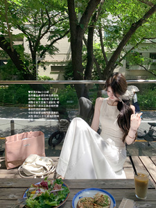 白水女 素素美女感 无袖背心连衣裙女韩系清冷感温柔修身裙子