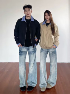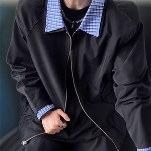 miu系假两件哈灵顿夹克男秋季cleanfit高级感巴恩风短款工装外套
