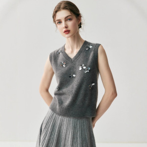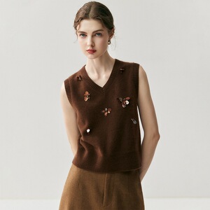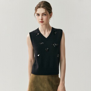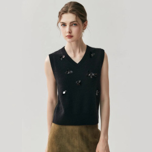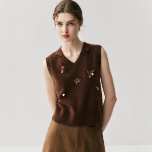 设计感立体蝴蝶提花羊绒开衫女秋冬时尚叠穿无袖马甲气质减龄套装