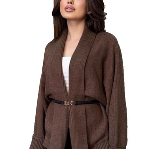 跨境欧美女装 2025秋冬宽松休闲纯色针织开衫女配腰带毛衣外套女