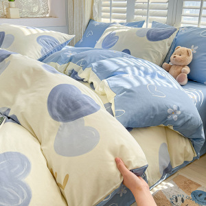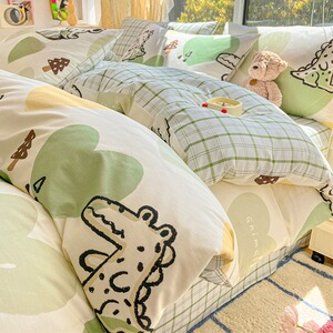 卡通纯棉床上四件套100全棉裸睡被套床单夏季宿舍床品三件套4