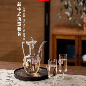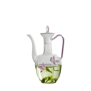 蝴蝶仿宋执壶高脚杯套装高硼硅玻璃中式贵妃泡茶器耐热玻璃绿茶壶