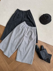 2025秋季新款女下装七分裤文艺风ins外贸裤子加绒加厚显瘦毛呢