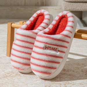 毛绒棉拖鞋女秋冬季居家软底防滑加绒保暖情侣条纹款毛毛拖鞋男款