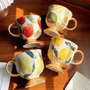 工厂批发手绘釉下彩马克杯女生伴手礼中古风陶瓷咖啡杯早餐牛奶杯