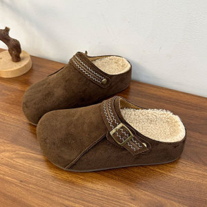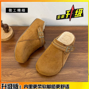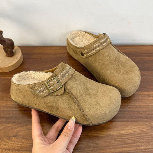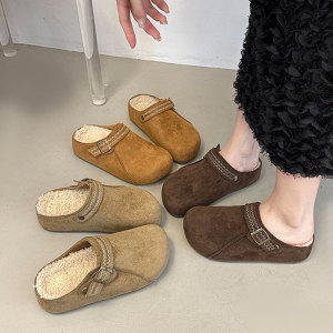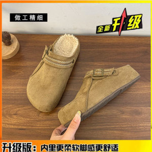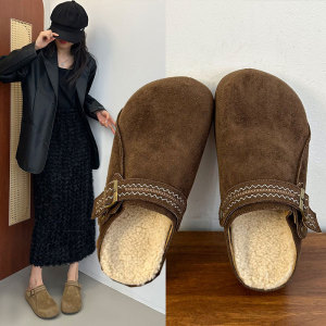真皮厚底复古勃肯包头半拖鞋女2025秋冬新款一脚蹬两穿博肯凉拖鞋