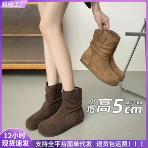 【sheii苏茵茵】济州小岛~保暖加绒褶皱堆堆毛毛短靴女勃肯西部靴