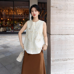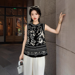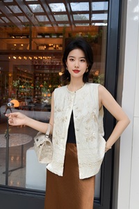2025秋上新鸟语花香重工绣花真丝丝绒开衫马甲新中式篙端背心上衣