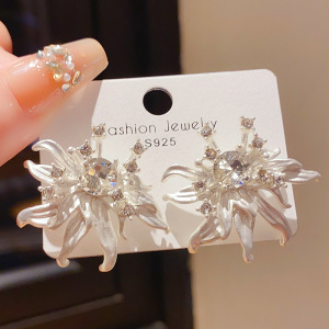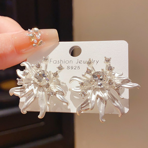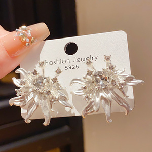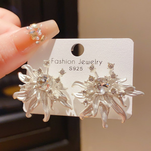 银针轻奢镶钻花朵耳钉冷淡风气质精致时尚耳环小众高级感个性耳饰