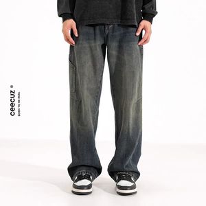 复古水洗做旧工装牛仔裤男款秋季重磅vintage宽松阔腿直筒休闲裤